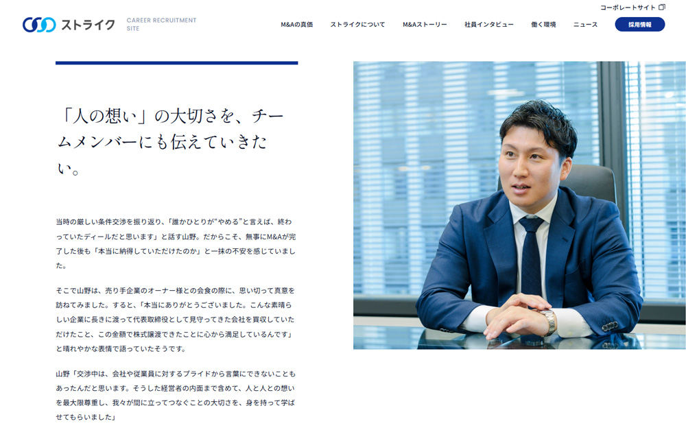 M&Aの社会的価値を伝え、業界のネガティブイメージを払拭するキャリア採用サイト