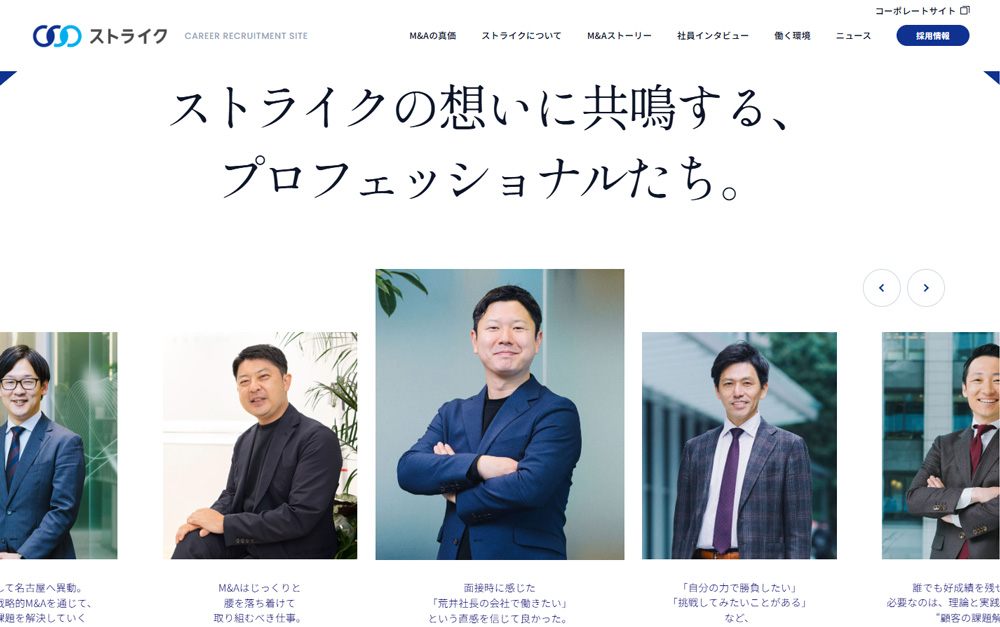 M&A仲介のリーディングカンパニーである株式会社ストライク様。採用活動における大きな課題は、「M&A=利益優先で不透明」といったネガティブなイメージをいかに払拭し、共感と信頼を軸にした人材採用へつなげることでした。